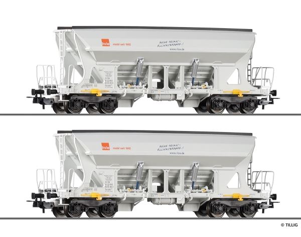 Güterwagenset der HVLE, bestehend aus zwei Selbstentladewagen Faccns